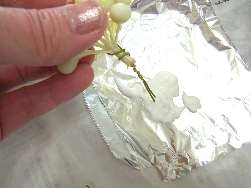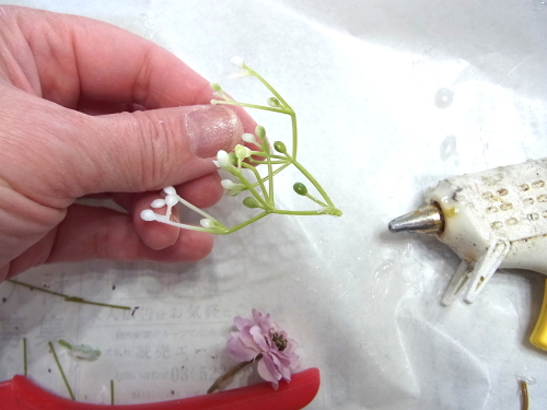 花材を小分けにして、グルーでとめていきます。