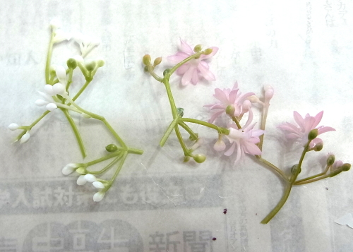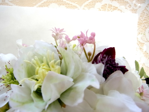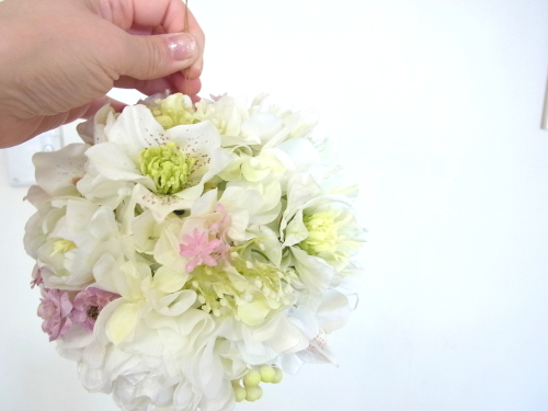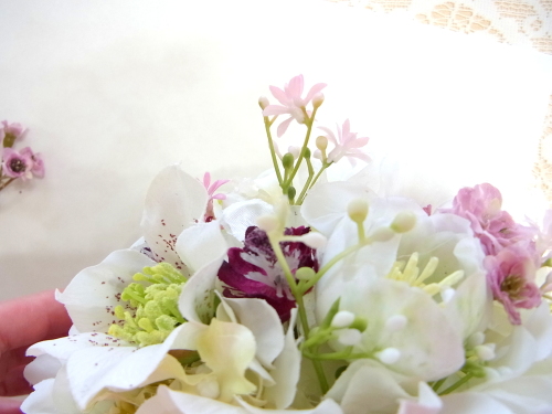 カスミソウは少し長めに飛び出すくらいに挿すと動きが出て可愛いです。