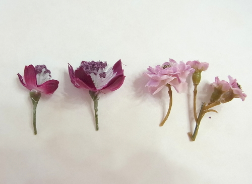 長くするのは、先にいれたラナンキュラスに高さを合わせるためです。 |
