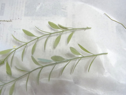 長い方のビーンズリーフを 2~3に好きな長さにカットし下の花材にグル^で貼り付けるか、 |