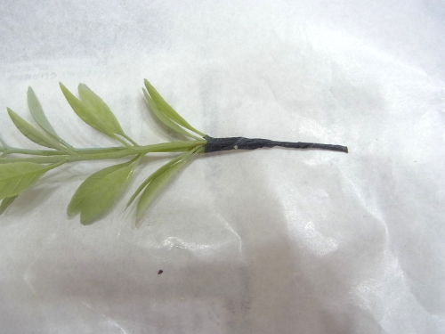 またはUピンを葉の分かれ目にかけて そのままテーピングして挿しましょう |