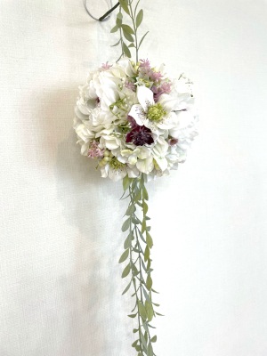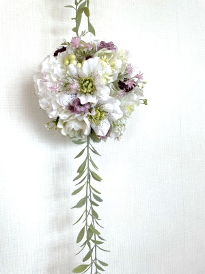 ボールブーケを下げます。角度はやや上げ気味のほうが重みで安定します。