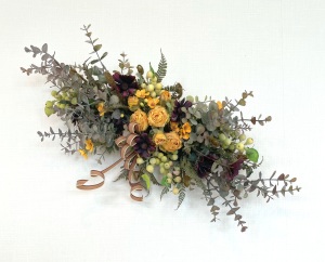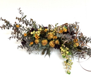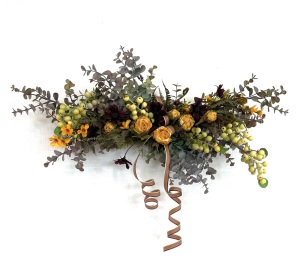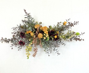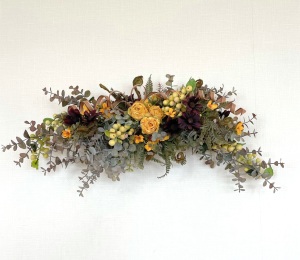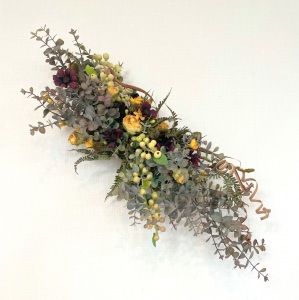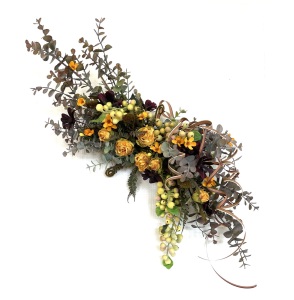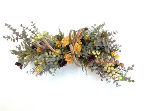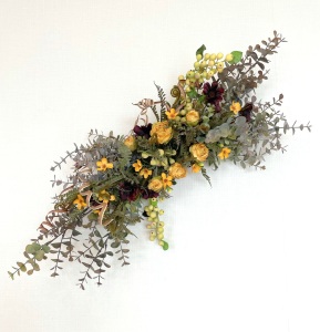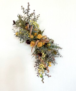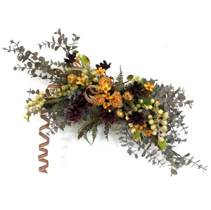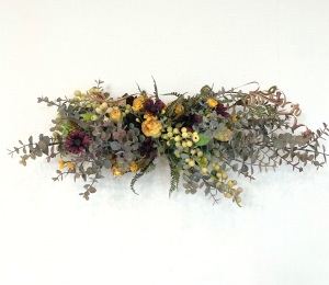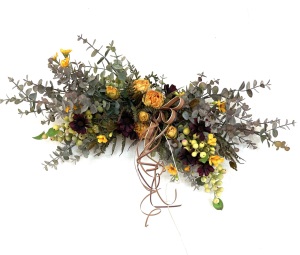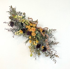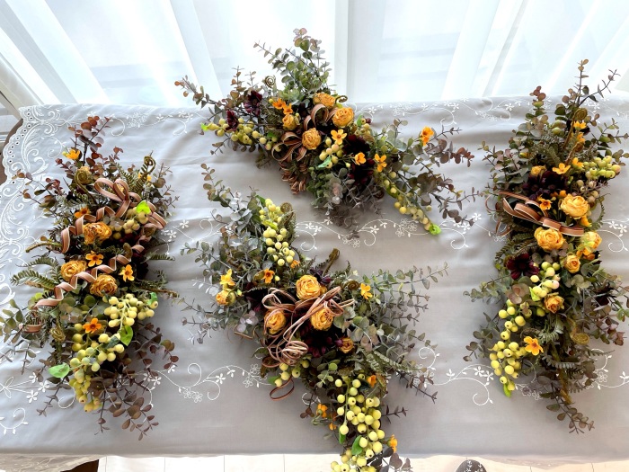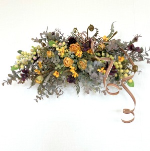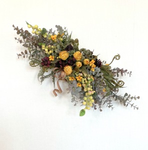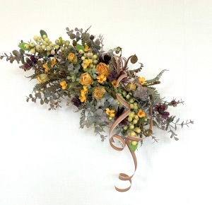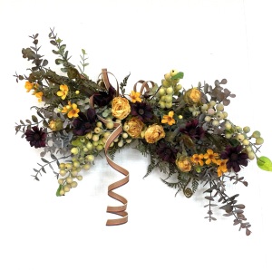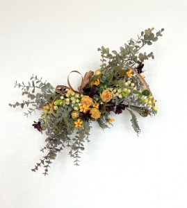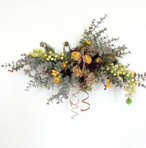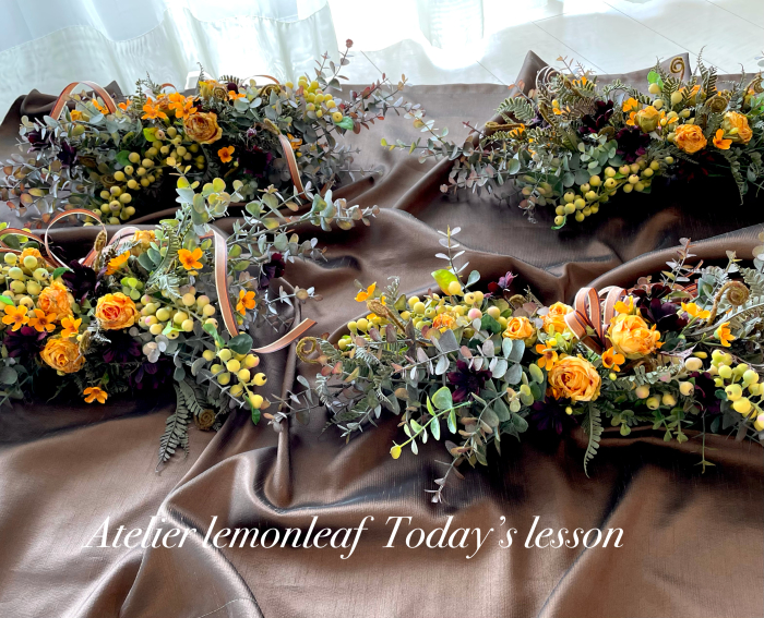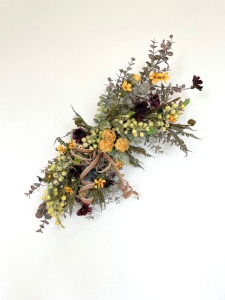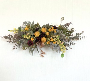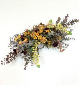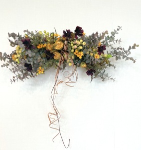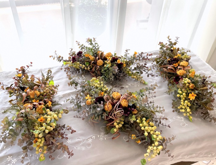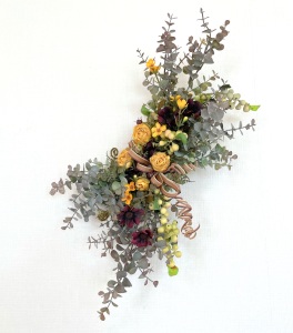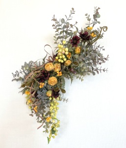さて、今日の主役は収穫ベリー!見事なグラデーションと質感が素晴らしいアーティフィシャルフラワーです、そして、チョコレートコスモスは大人気。引き締めカラーの役割も果たしてくれています。