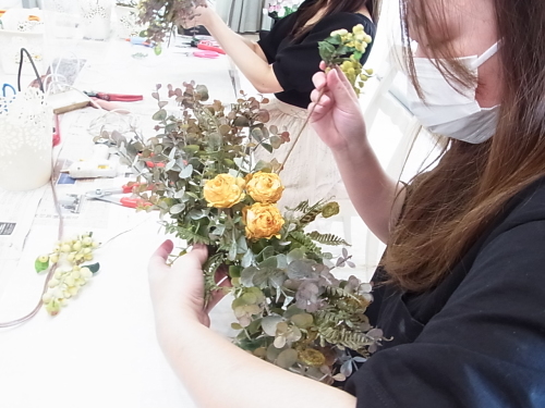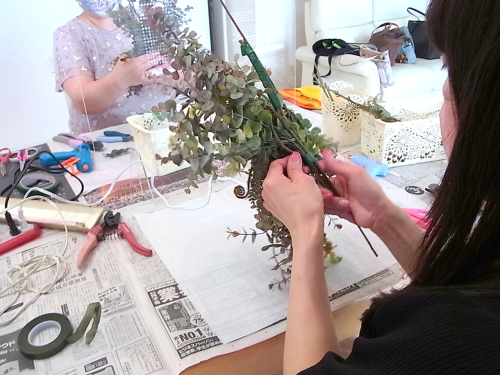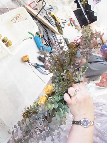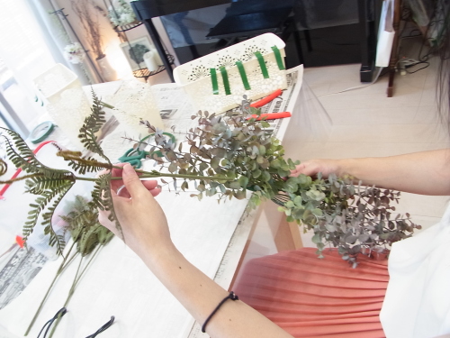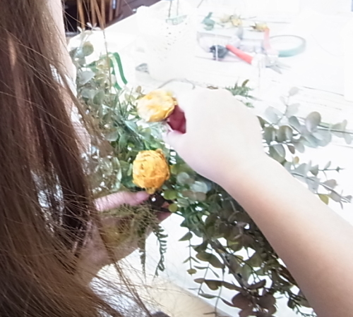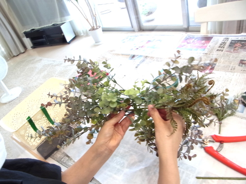 ユーカリが固定できたら、ふんわりさせましょう