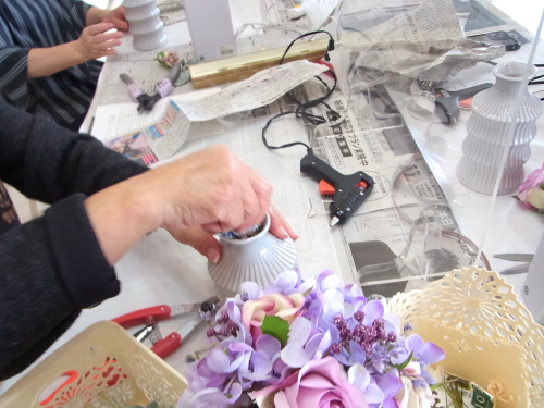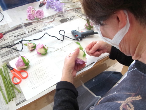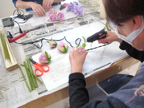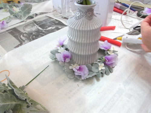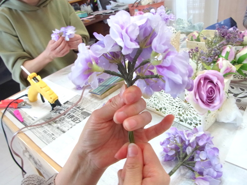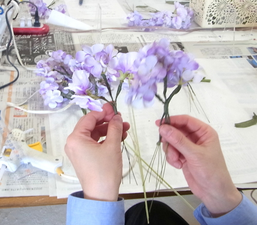 あるいは、グルーで残り、花材をのせてシルエットを調整します