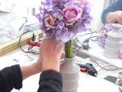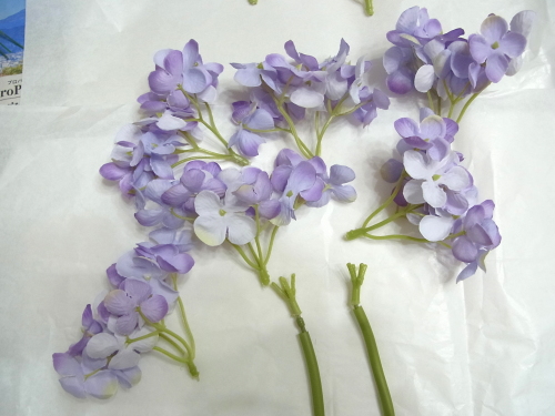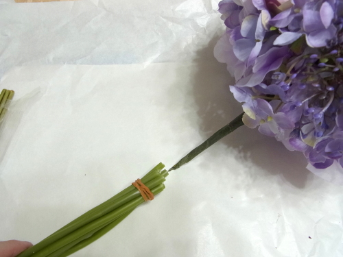 (1セットは3本入り)どの順でもよいので、紫陽花2セットとスイートピー1セットを合体させます。合計3セット