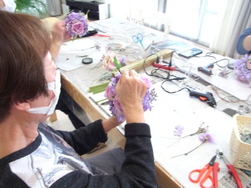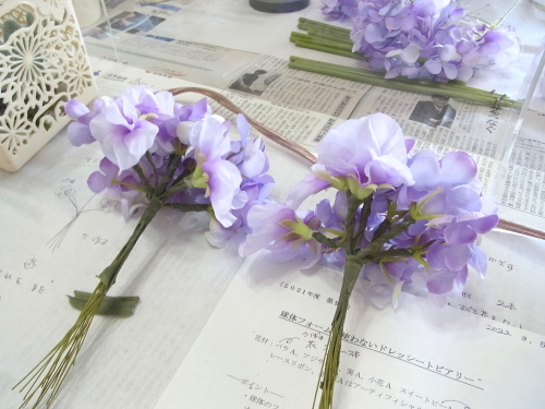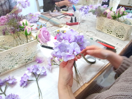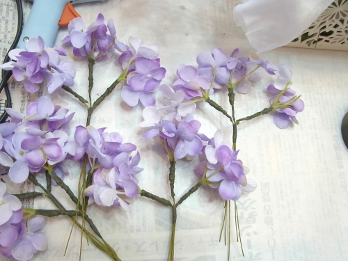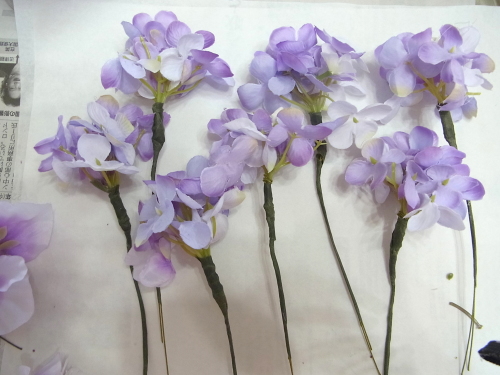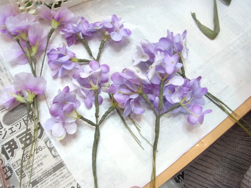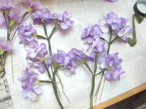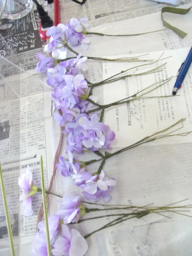 残ったテーピング済みのスイートピー、アジサイは調整にとっておきます。