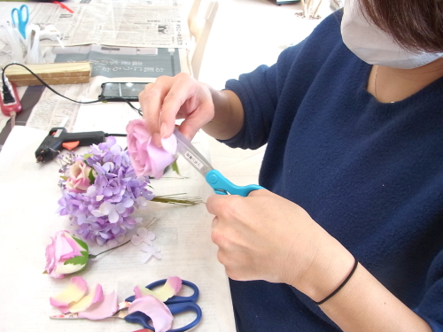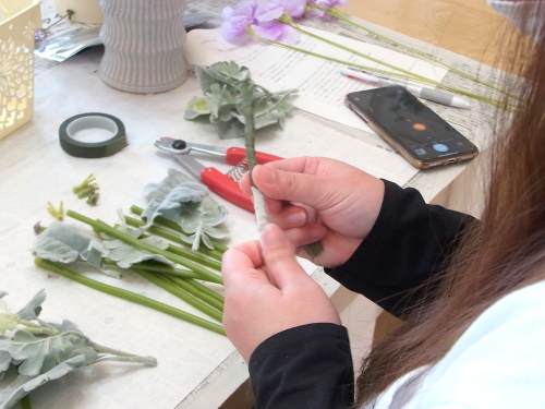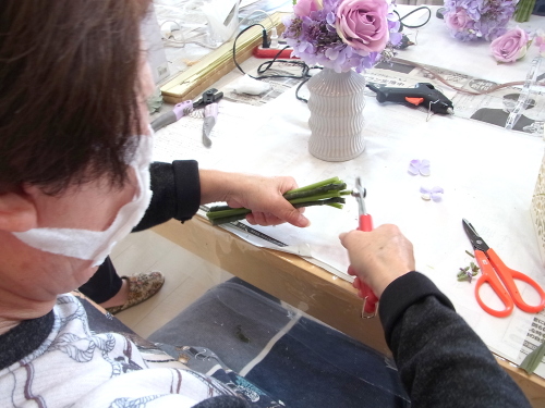 花材の準備をします