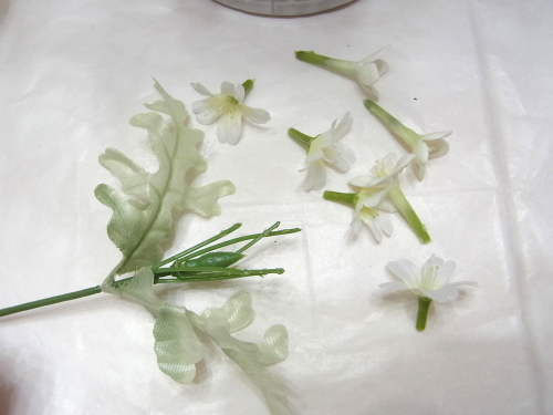 白い小花をカットして、グルーでトッピングします。 ポイント