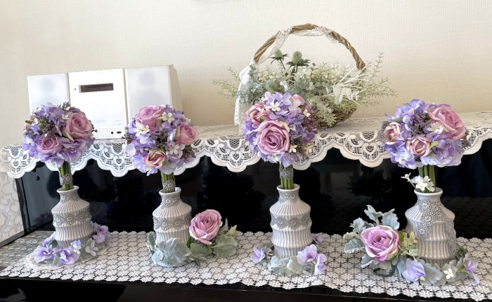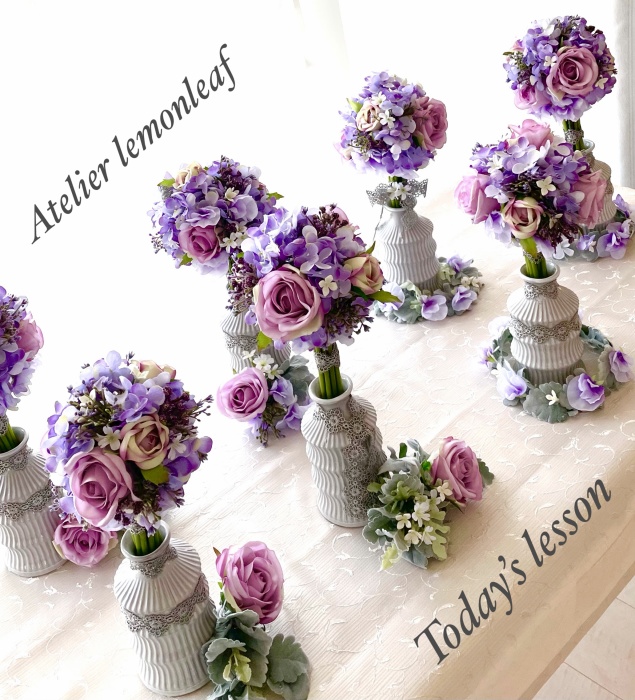 ですから今日のアレンジが多少、歪んでいてもむしろOKです。角度によってちがう表情も楽しめますよね。それが素敵なんです。自信をもってくださいね