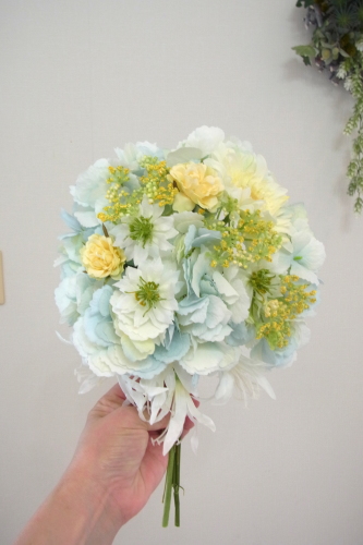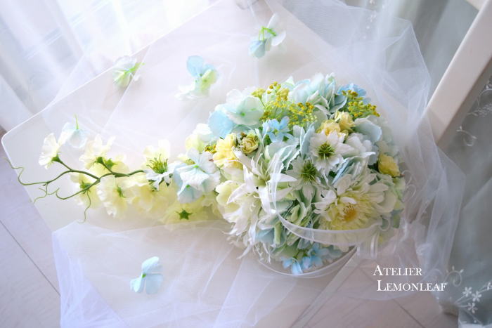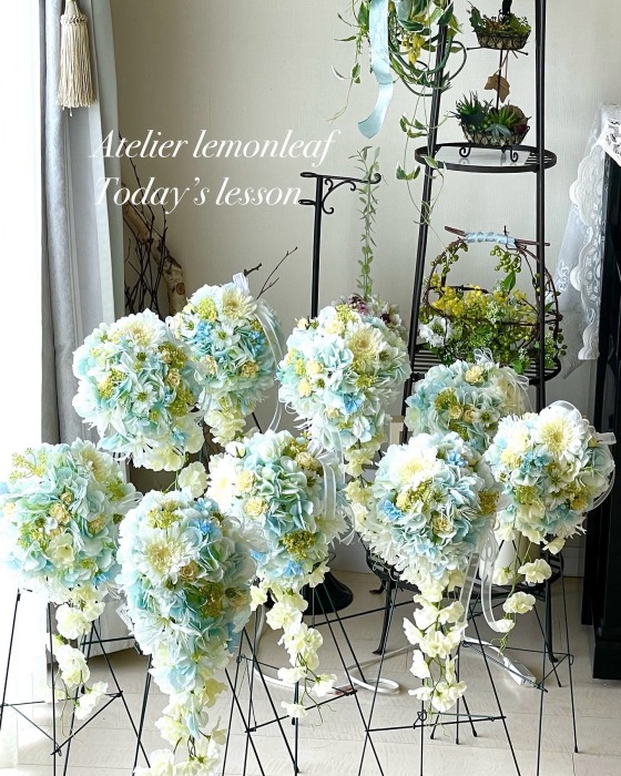 エアリー♡ブーケレッスンや販売してみたい、インストラクターさんご希望の方へ 作り方はまったく一緒、慣れるととっても簡単です。 エアリー♡ブーケの販売・レッスンの活動をご希望の方は、インストラクター登録が必要です。本日のレッスンから3か月以内ですと、今回のレッスン作品を認定ための課題に該当させることができます くわしくはお問合せください info@lemonleaf.jp 下のアレンジは別のお花でつくってみました。エアリー♡ブーケインストラクターのご参考に |