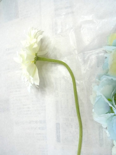 | ガーベラはこのままでOK 入れる箇所によっては、好みの角度でまげてください | |