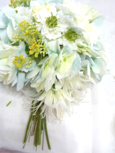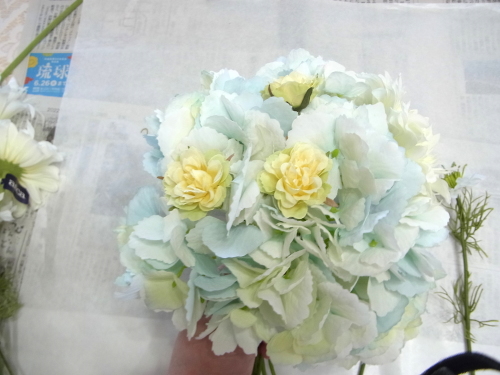 | 紫陽花、ネリネで先端の三角形ができました。 | |