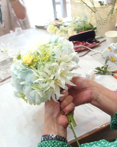 | ラウンド部分が完成しました! このままでもラウンドブーケで飾れますが、今月はティアドロップのブーケに挑戦です! |
