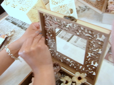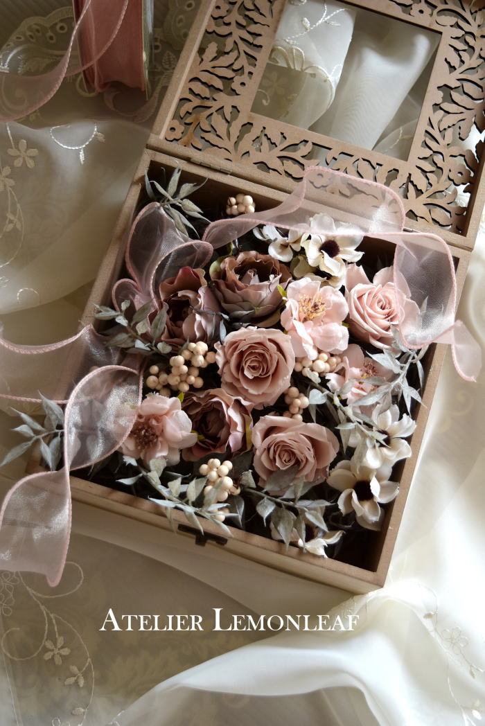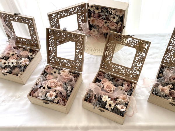 | レイアウトを決めます。 好きなところに、様々な角度、高低をつけて入れます。 蓋をしめ手ギフトなどにする場合は、閉めた状態で見え方もチェックしましょう |
