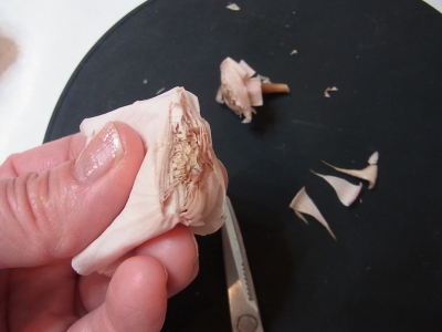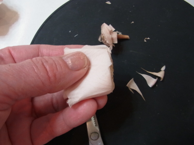 | 残りの1/2のルスカスをはずします。こちらは表面に動きを出すトッピング用です。 | |