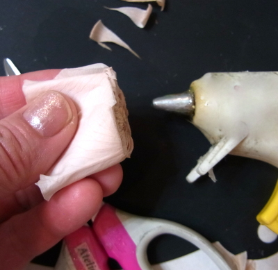 | 素地がかくれたら、壁や四隅などもいれていきます。 フンワリ重なってOKです。 グルーるは根元だけつけます |