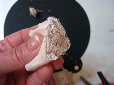 | 5秒程度待ちます。(季節によ変わります。)盛ったグルーが再び中心をとかしますので、そのタイミングでワイヤーをネジリながら挿しこみます | |