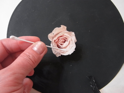 | 指先または、綿棒で、 グルーが固まる20秒以内に、外側の花びらからゆっくりひらきます。 | |
