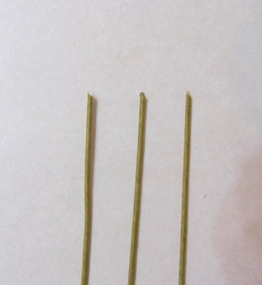 | 18番ワイヤーを目分量で3等分にします。注射針のように尖らせます。 | |