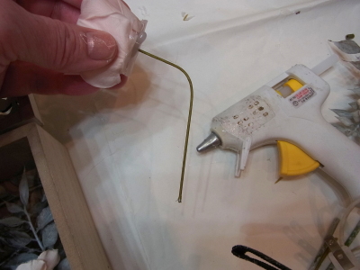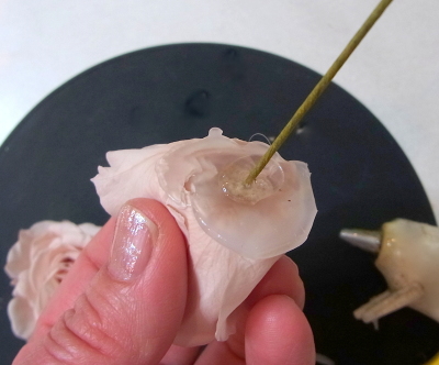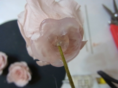 | ポイント 茎の根元の方だけグルーで固定します。 先端はふわっとさせておきましょう。そのほうがお花をうけとめてくれます。 |