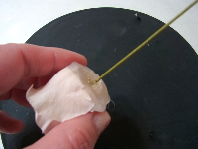 | マットにそっときます。�花の中央を上から優しく押さえてマットに固定します。 | |