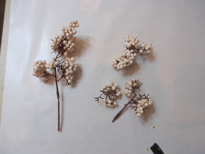 | ルスカスをいれたら、実、アネモネをいれます。これらがあとになっているのは理由があります。 色が白だからです。白は少量でものすごく強いいろになります。ハイライト効果になるので、加減して、みましょう。 |