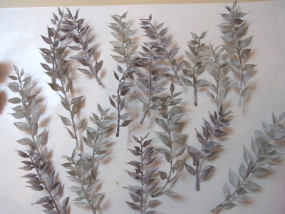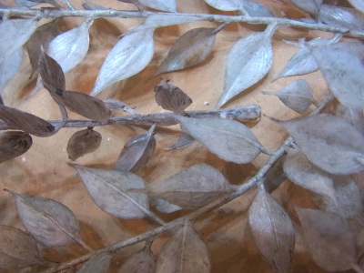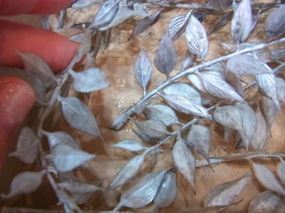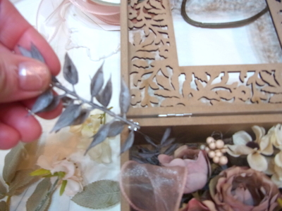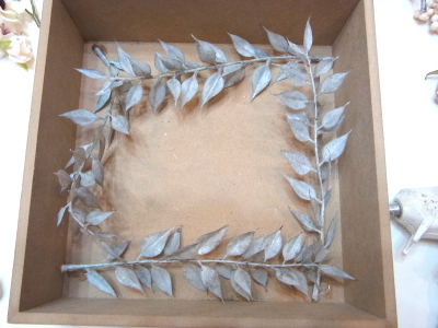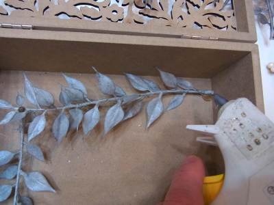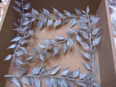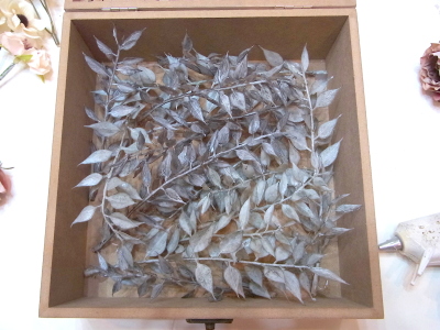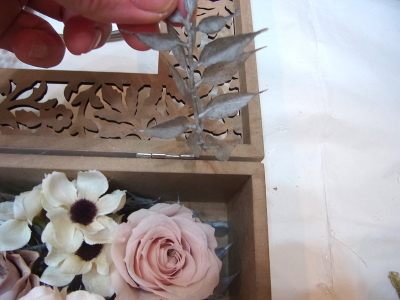 | ここから先は、根元にグルーをつけて、ボックスの素地がみえている個所にどんどん入れていきます。 ルスカスはクロスしても大丈夫です。フンワリした足場をつくりましょう |