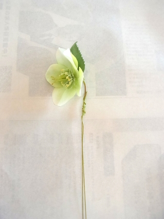 このグリーンのクリスマスローズは脇から出ている1輪にワイヤーがありません