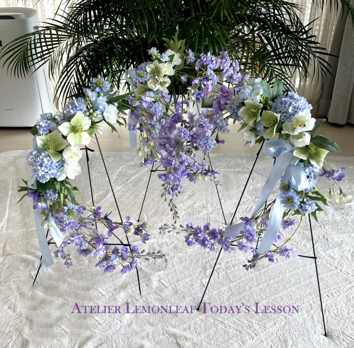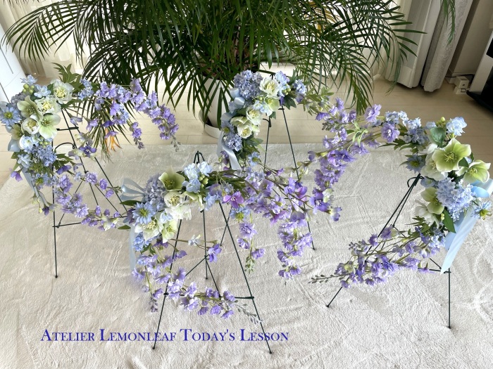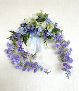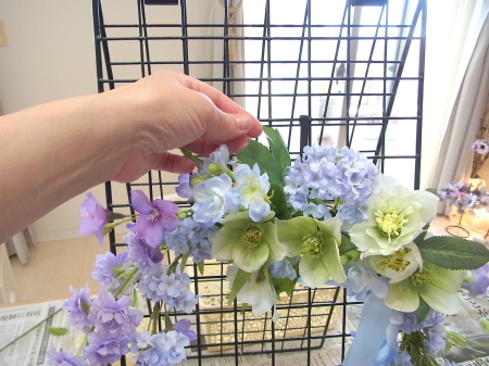ずらしながら、二つ目の花束の場所を決めているところです。 |
