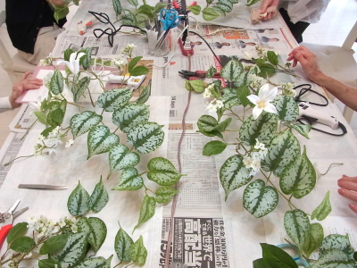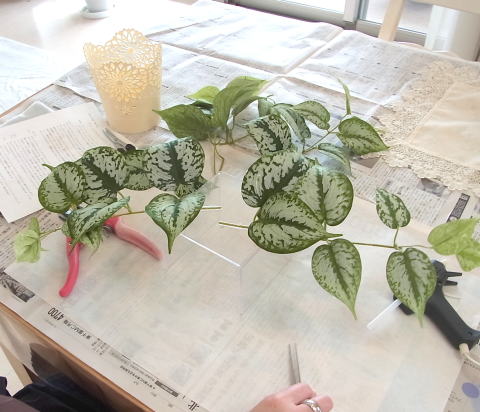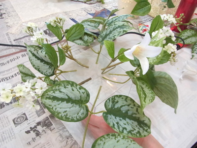 | 残りの葉をつかってさらに整えます。 | |