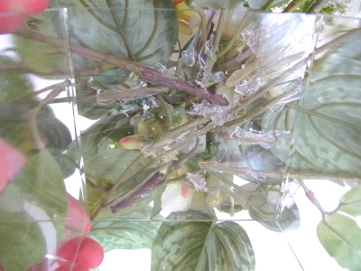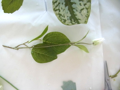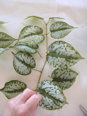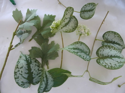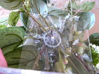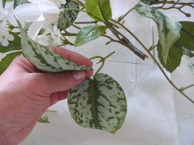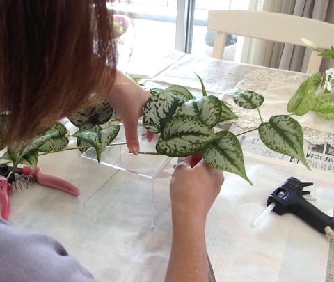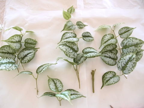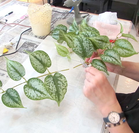 | 残っている葉の一部をケースの前後にもつけます | |