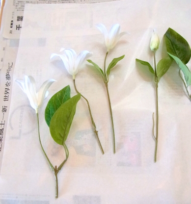 | L字に折ってとめます。あるいはそのまま花材につけます。 | |