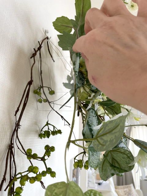 壁に飾る時は先に実をかけてからアレンジを吊るします |