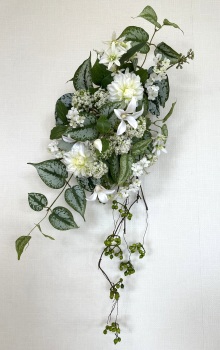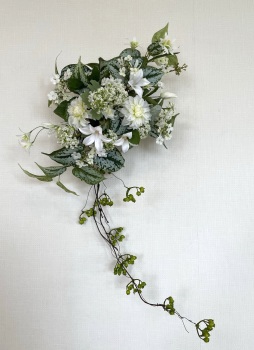 | スターリングフラワーを好みの位置にいれます。この花はカスミソウのような役割で、脇の方であれば、トップの高さを超えても大丈夫です。 ふんわり長く使うと動きがでます。 |