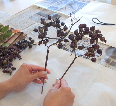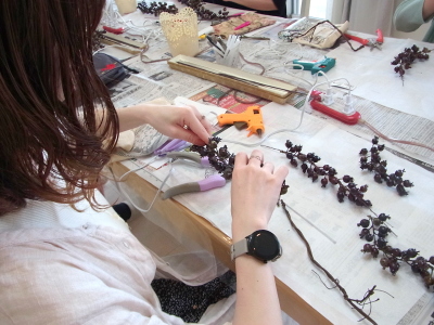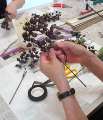 | 実のパーツの作り方はYouTubeでもご紹介中です。 巻きつけているところです |