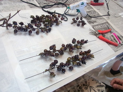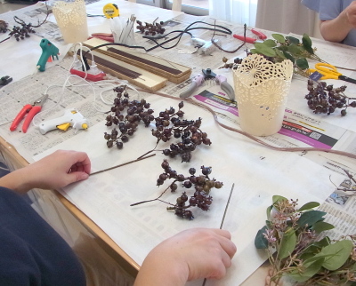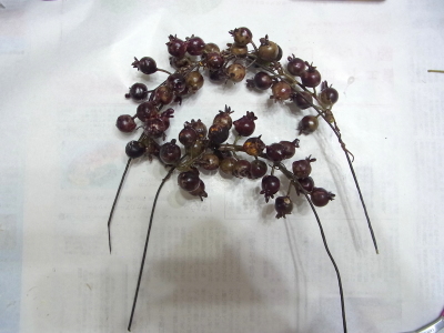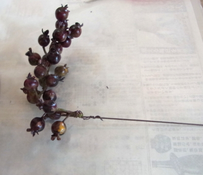 | 輪状の実ピックをもう一つ 作り、合計三つでアレンジすることもできます。 | |