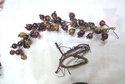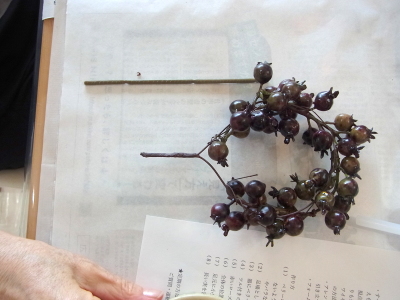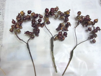 | こんにちは まだ暑い日もありますが、夜は虫たち声が聞こえるようになりました。 今月はアレンジも秋の装いに♬ それでは早速始めましょう。 枝から実を切り離します。その中から20センチ弱くらいのものを選び、もう一つは長い実をカット、して切り出します。 2本用意しましょう |