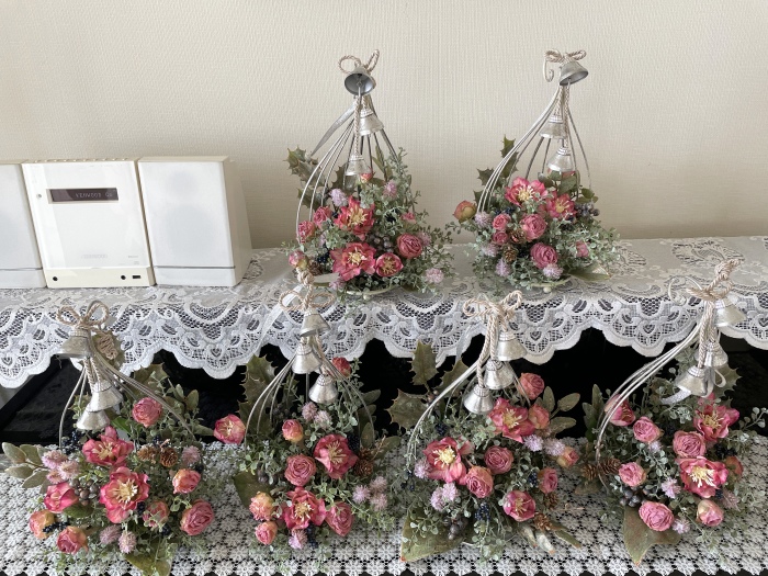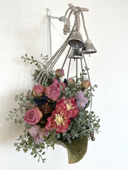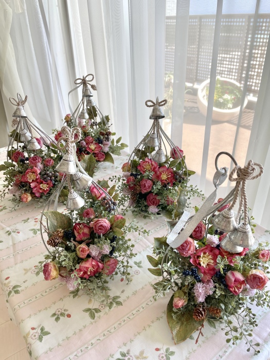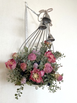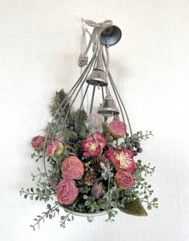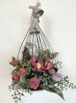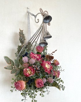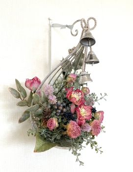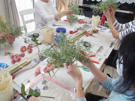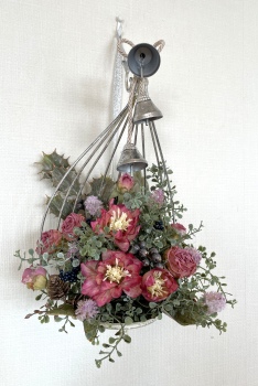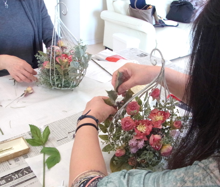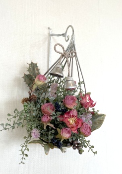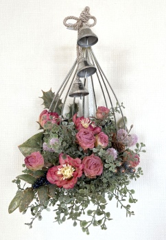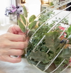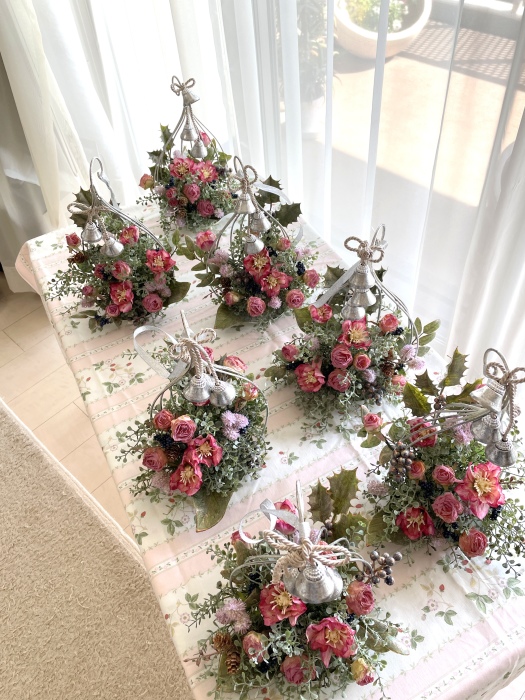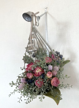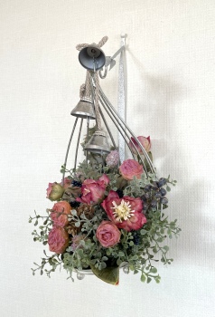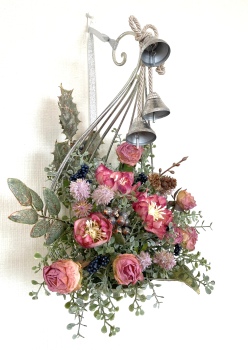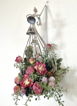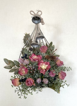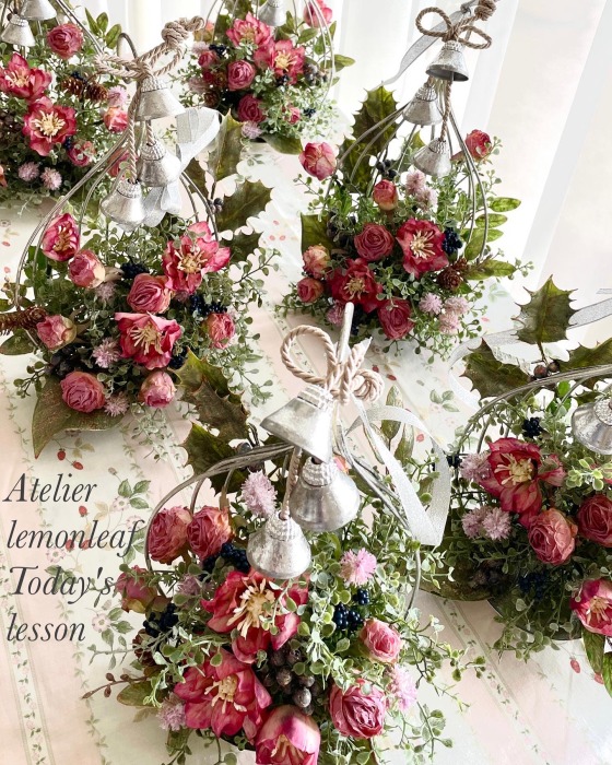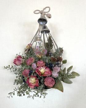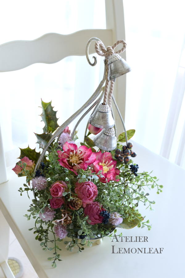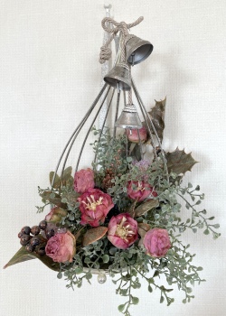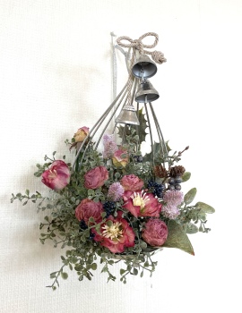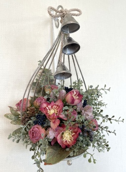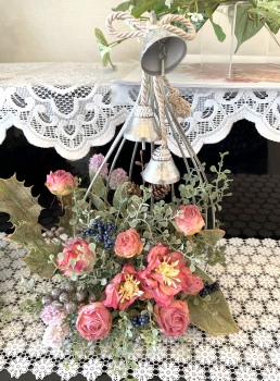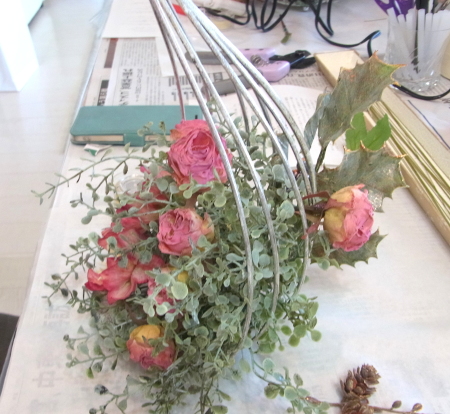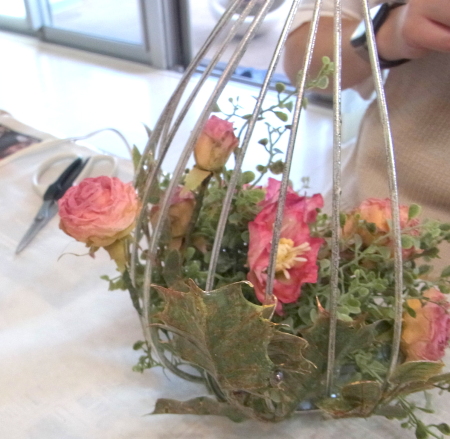 こんにちは お元気ですか?今年も残り少なくなってきましたね。クリスマスはまだだけれど、年末にむかう、華やいだ気持ち それがプレクリスマス。 わかる人にはわかるワクワクを手づくりで♪ あまりクリスマス色をださずに、可愛いベルがスイングするデザインにしてみました。 では早速つくっていきましょう ユーカリ葉を髪の毛をとかすように絡まったものをほぐします。 ポイント アーティフィシャルフラワーはカートン入りで輸送上、ぎゅっと押されて、直立状態になって運ばれてきます。制作する前に、どんな花材もフンワリさせてあげましょう これだけで全然表情がかわるので大切なポイントです 今回のご紹介する工法の特長はフォームを全く使わないこと、花材を足場にするので、とっても手軽です みなさんも器にデザインするときに、そのまま花材が足場にならないか?考えてみましょう そうすると粉粉した面倒なフォームから開放されますよ |