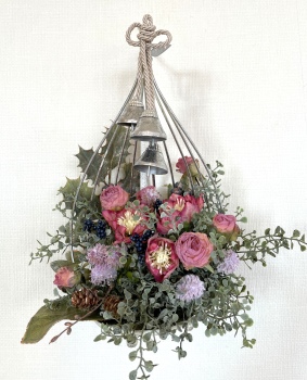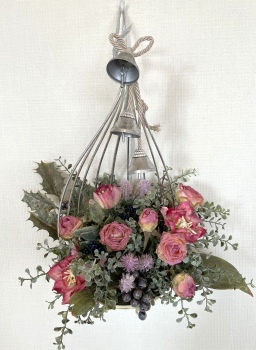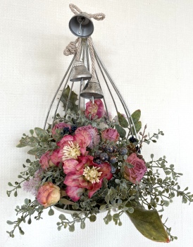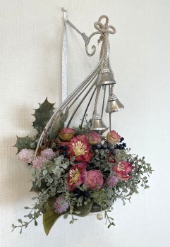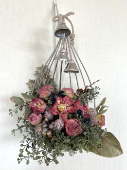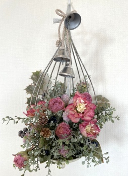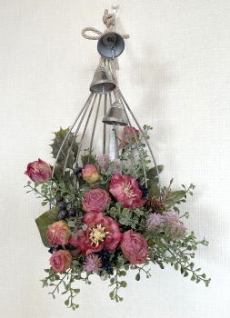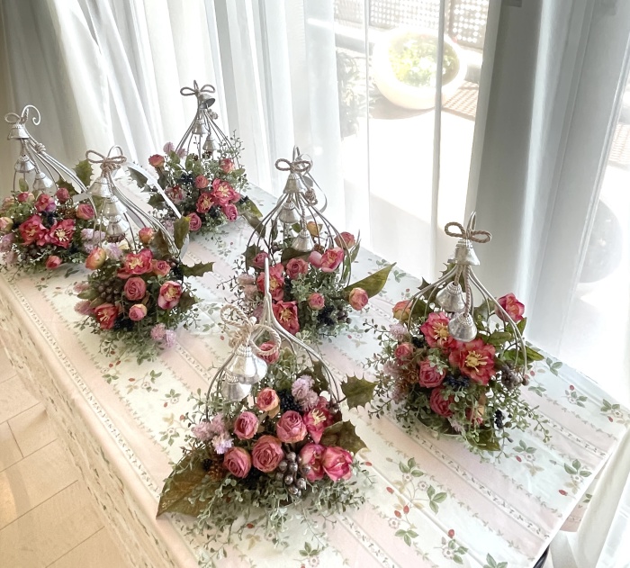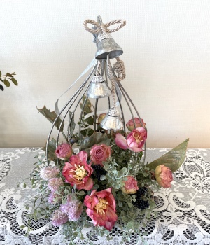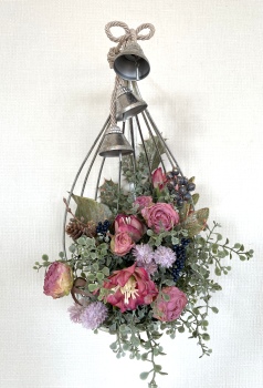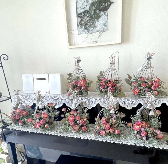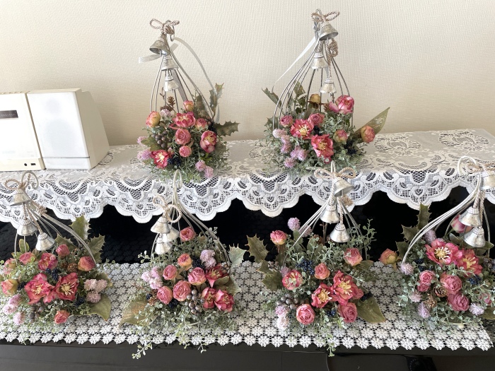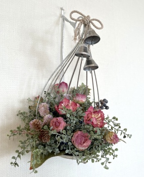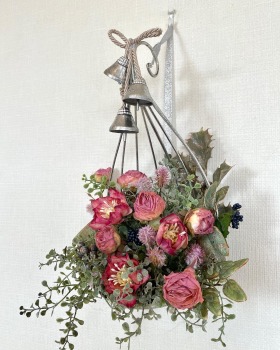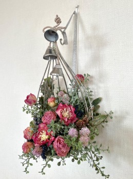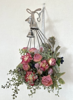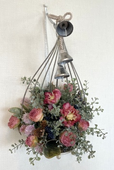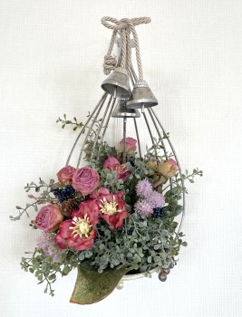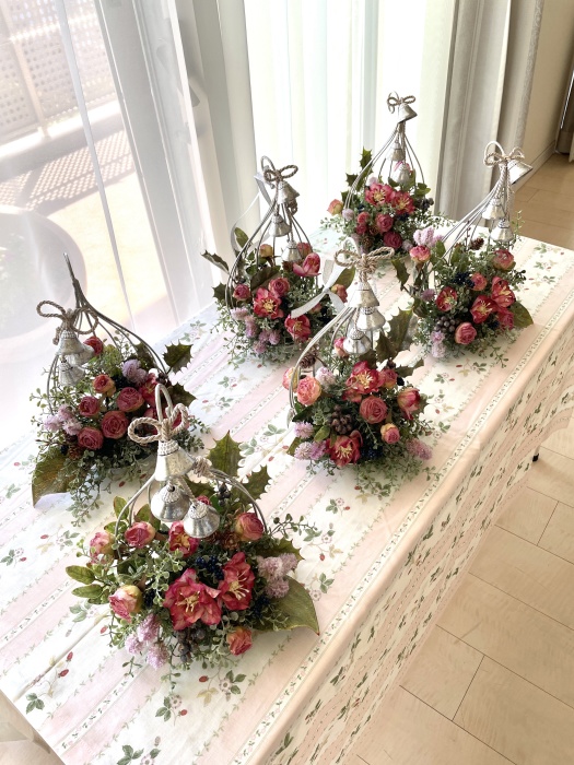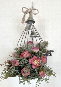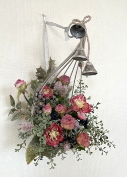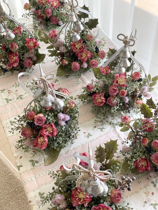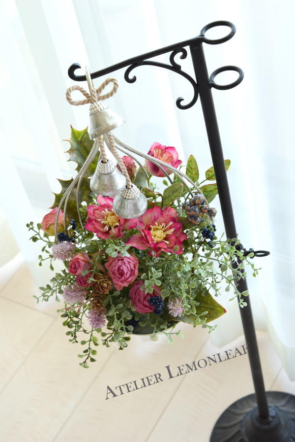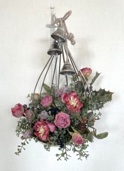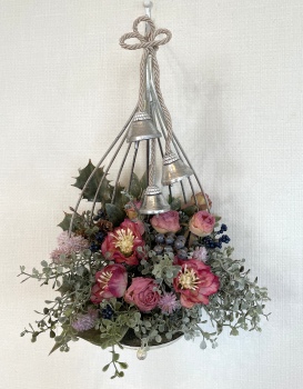 こんにちは お元気ですか?今年も残り少なくなってきましたね。クリスマスはまだだけれど、年末にむかう、華やいだ気持ち それがプレクリスマス。 わかる人にはわかるワクワクを手づくりで♪ あまりクリスマス色をださずに、可愛いベルがスイングするデザインにしてみました。 では早速つくっていきましょう ユーカリ葉を髪の毛をとかすように絡まったものをほぐします。 ポイント アーティフィシャルフラワーはカートン入りで輸送上、ぎゅっと押されて、直立状態になって運ばれてきます。制作する前に、どんな花材もフンワリさせてあげましょう これだけで全然表情がかわるので大切なポイントです 今回のご紹介する工法の特長はフォームを全く使わないこと、花材を足場にするので、とっても手軽です みなさんも器にデザインするときに、そのまま花材が足場にならないか?考えてみましょう そうすると粉粉した面倒なフォームから開放されますよ |