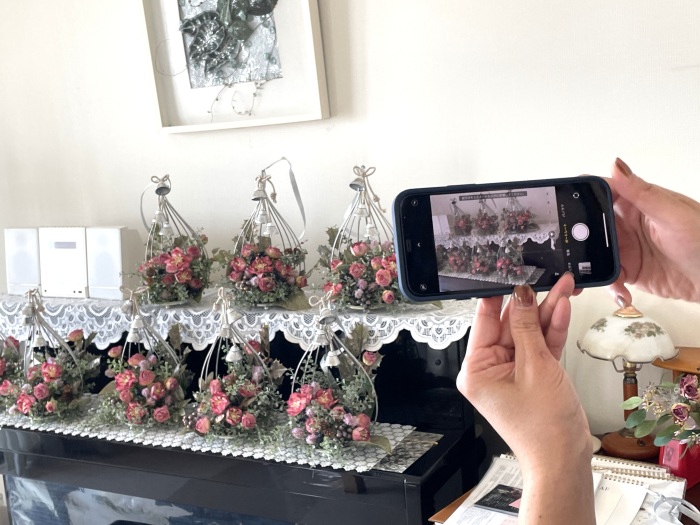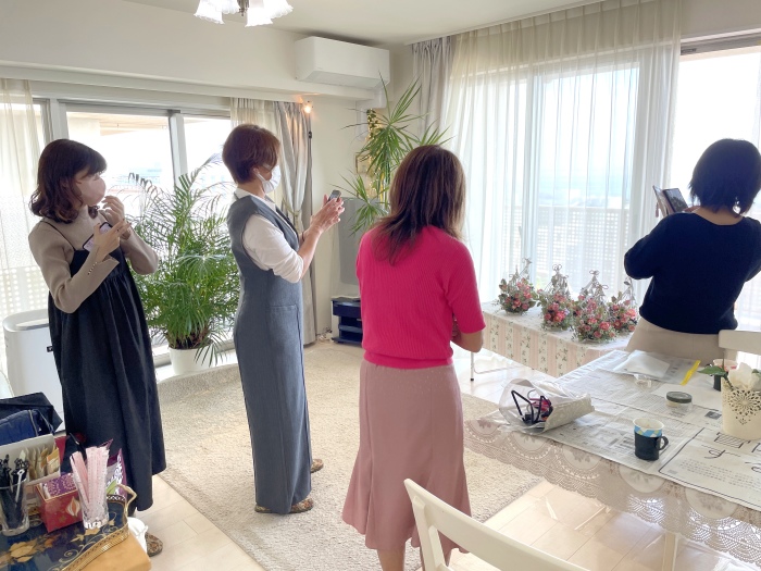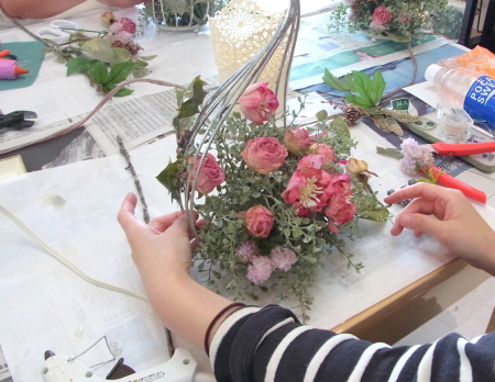 | まず いきなりグルーで付けずに、全体のイメージ、メインをどれにするか?どこに置くか? ここは楽しいところ(^^♪レイアウトをおよそ決めましょう。 |
