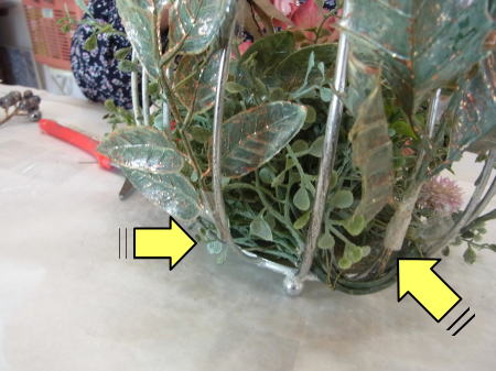 | ポイント 葉やお花を固定しているところです |