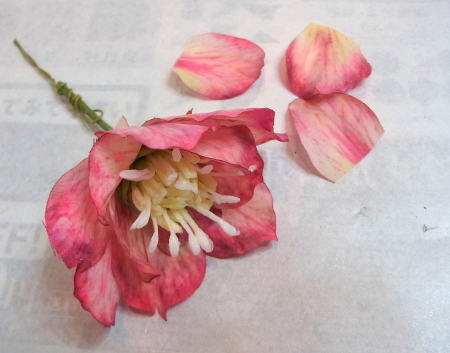 | クリスマスローズを大小にしたいときは、少し下の花びらをカットすると小さくなります。 | |