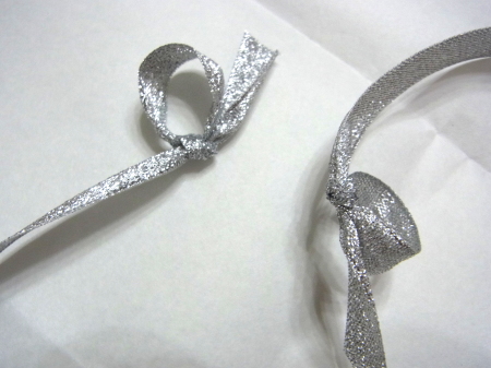 | 上の輪を前にたおし、リボン型にしていグルーでとめます | |