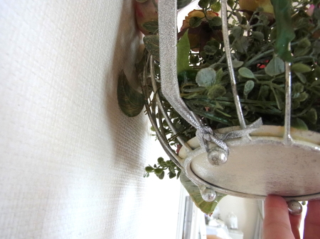 | 写真のように上と下をひっかけて下げます。下げてから好きな角度に、傾き加減を調整します。 どうすれば、綺麗に下げられるか?ただ下げたのでは、前が上がってしまいますよね。 半日くらい試行錯誤。この下げ方を発見したときは感激しました~\(^o^)/ |