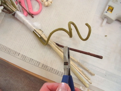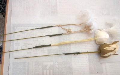 | バラの茎はカットしてもOKですし、ペンチなどで写真のようにくるくるっとまげても可愛いです。 | |