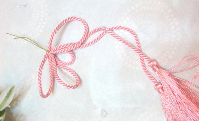 | タッセルお好みのリボンの形にして貼り付けて完成です | |