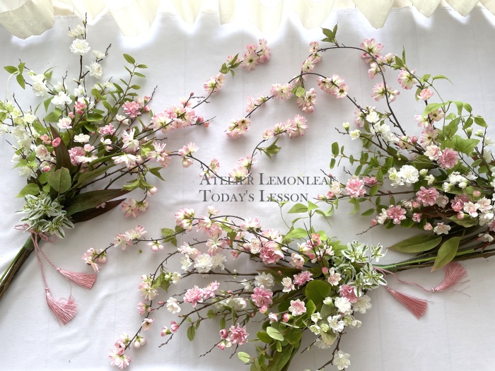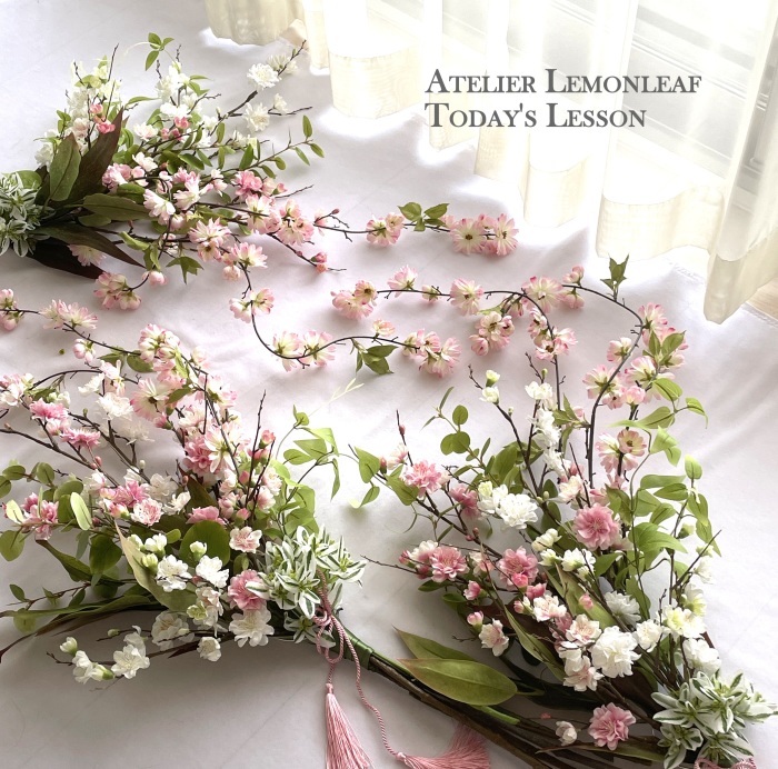 | こんにちは 3月に入りいよいよ春本番です。 今日は素晴らしいアイテムをご紹介します 2軒の花材店をはしごして美しい桜を選びました。枝垂桜と枝桜です 個人ではなかなか入手困難なアイテムです。この機会に 最高品質をお手に取って、質感、お花の表情をお楽しみくださいね それでは早速始めましょう !セロテープをご用意ください。 魔法のアシストリングの持ち手にフラワーテープを書きます ポイント 魔法のアシストリングについて 常にリングの上からさして、持ち手に手^プで固定しとめます。すると、テコの原理でお花が自動的に前にでてきます。壁に掛けたときの押し戻しもありません、見た通りに飾れます。 背面に支えがあり、強いチカラで握りしめることなく、お花のレイアウトが楽しめます。 (特許意匠登録商品) 大体のイメージが固まったらいったん手を離してバラバラにします |