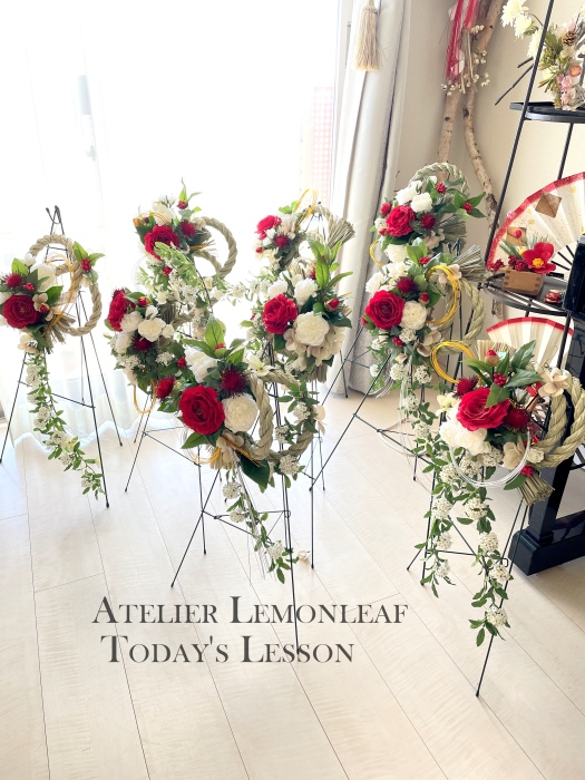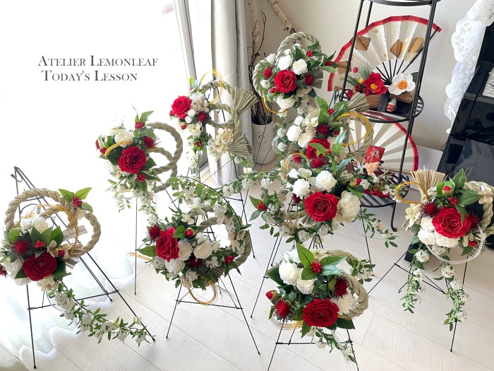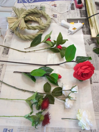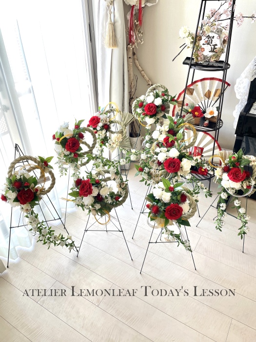 | こんにちは いよいよ今年も 残り少なくなってまいりましたね。 今日はお正月のしめ縄レッスンです。 お正月のしめ飾りは神様をお迎えするしるしと言われており、飾るタイミングは29日と31日を避けるなど習わしがあります。 「松の内」が終わるとしめ縄飾りはかたずけます。松の内の期間は1/7や1/15など地域によってちがいます。 そこで、しめ縄のみ、取り外せように、できるかぎりワイヤーを使い、お花は別途飾っていただけるようにしました。 それでは早速参りましょう! ツバキは つぼみと分けます。つぼみの下の方の葉はまとめるとき、手にあたるので、とっておきましょう。 アザミも下の方の葉っぱはカット |