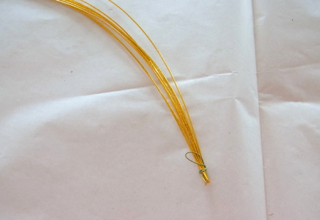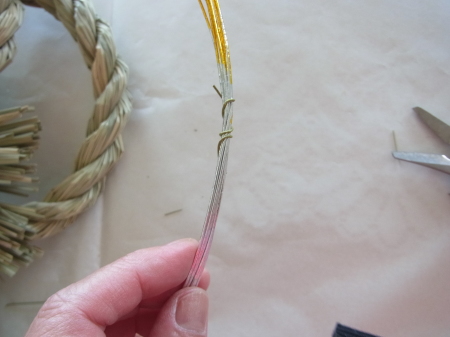 | 水引の先端をワイヤーまたは、セロテープでまとめます。(セロテープのほうがまとめやすいです) | |